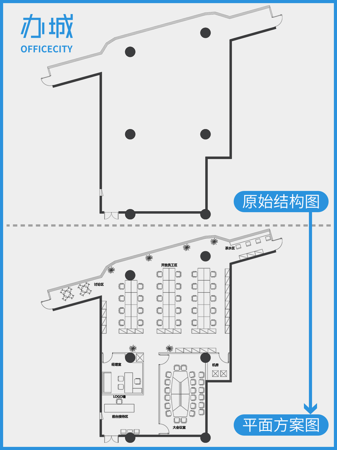 提供有价值的办公空间设计与服务 OFFICE CITY | 设计图库 OFFICECITY 办城 | 办公室平面设计的要点及案例 办城 I 设计 功能分区、交通动线、空间利用 办城 | 办公空间效果设计案例 办城 I 设计